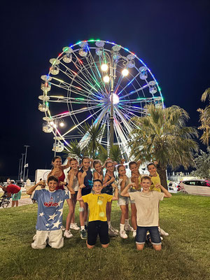 Ein Highlight war die Lagerolympiade: Die Jungs und Mädels mussten kreative Reime erfinden, Sandburgen bauen und sogar ein Trainerquiz meistern. Außerdem stand ein ganzer Freizeittag im Freizeitpark auf dem Programm – ein Erlebnis, das sicher lange in Erinnerung bleibt.